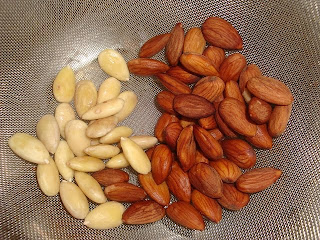 Ako koristite bademe u ljusci, prelijte ih vrelom vodom, ostavite nekoliko minuta, isperite hladnom vodom i ljuskica ce se jako lako skinuti.