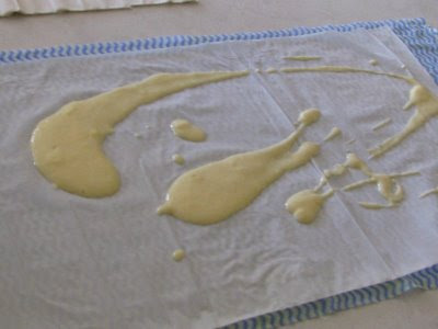 Staviti dve kore, poprskati ih kiselom vodom (u kojoj je dodato malo praška za pecivo), staviti malo fila, staviti još dve kore, ponoviti postupak i urolati. Staviti u podmazan pleh. Od te količine kora, ispadnu 3 rolata.Peći na 200 stepeni 30 minuta.
