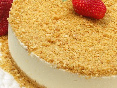 Pažljivo i polako iskrenite kremu na sloj keksića kako se ne bi napravila rupa na podlozi ili da se keksići ne promešaju s kremom. Posipajte ostatkom smrvljenih keksića po površini i stavite u hladnjak preko noći. Idući dan pređite oštrim nožem oko ruba kalupa, skinite prsten i poslužite.